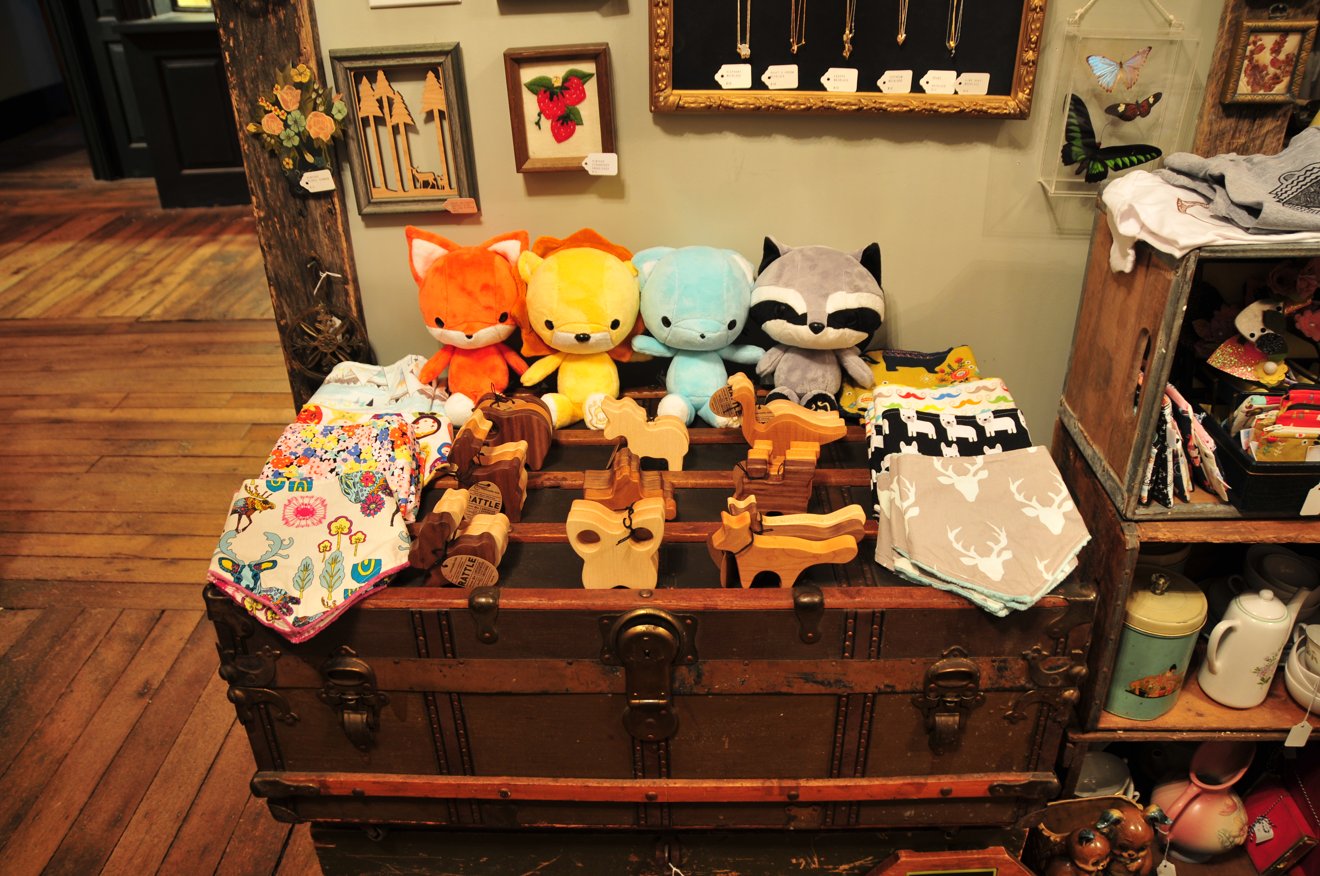 Located in downtown Lowell within the historic Mill No. 5, Bon Vivant is a wonderful mix of vintage and fabulous, handcrafted finds. Featuring artisan made jewelry for her and silkscreened t-shirts for him, they’re constantly adding new product lines or scouring the dingiest flea for the perfect vintage find. Featuring Etsy designers: Honey Bunny Lacquer, Gypset and Mullein & Sparrow.